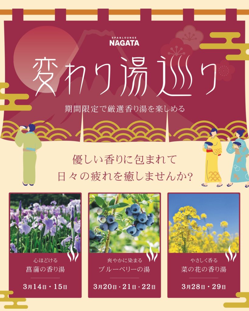 香りを楽しむお風呂やサウナ、期間限定のお得なキャンペーンなど、3月ならではの”わくわく”が盛りだくさん。