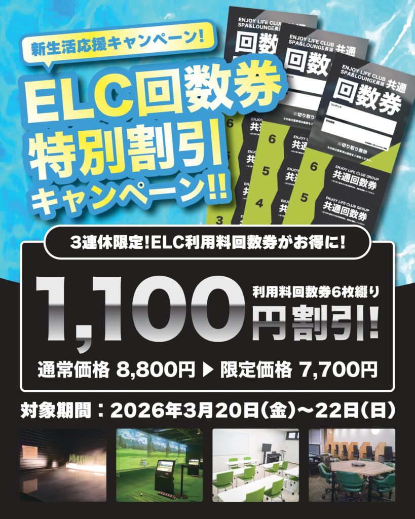 3連休限定!ELC利用料回数券(6枚綴り)が1,100円割引き!