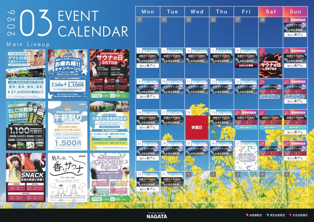 スパ&ラウンジ長潟 3月イベントカレンダー更新! - エンジョイ・ライフ・クラブ長潟