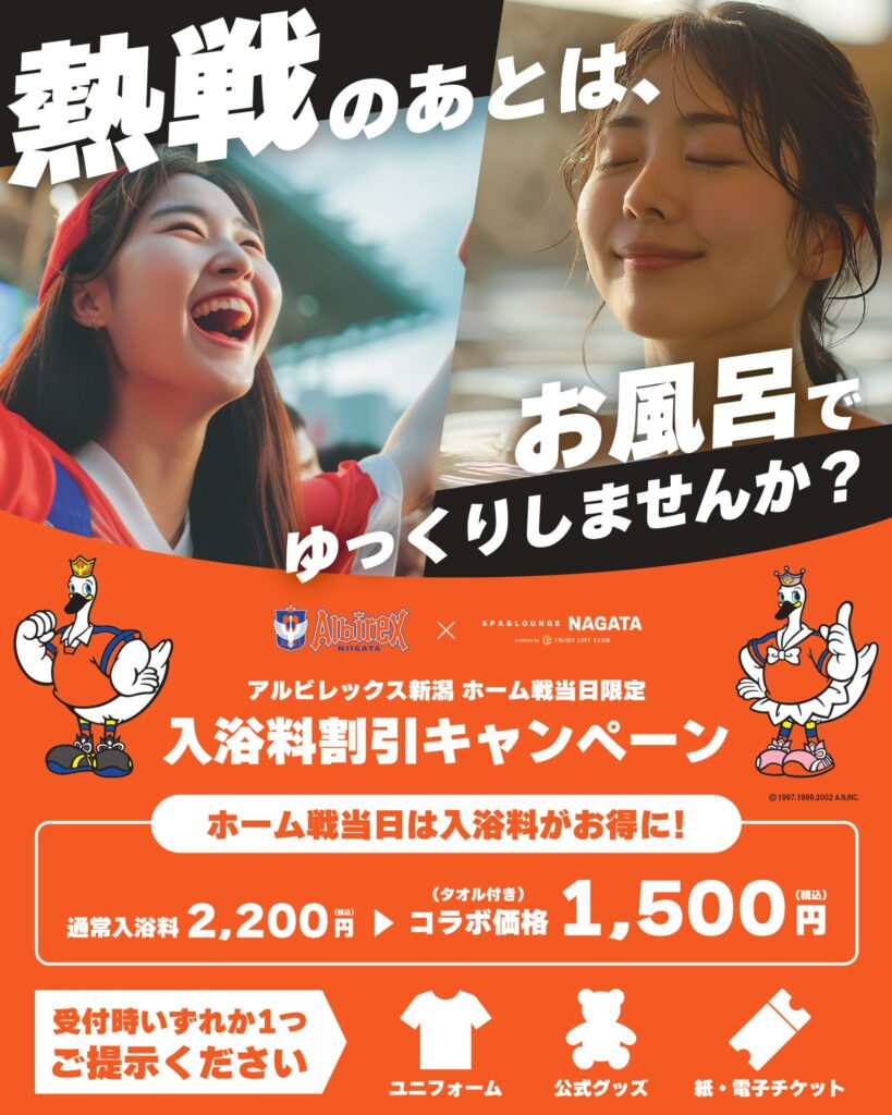 アルビレックス新潟ホーム戦限定!入浴料割引きキャンペーン開催!