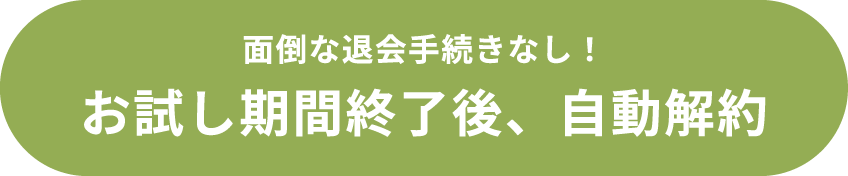 お試し期間(1ヶ月間)終了後は自動解約となります。